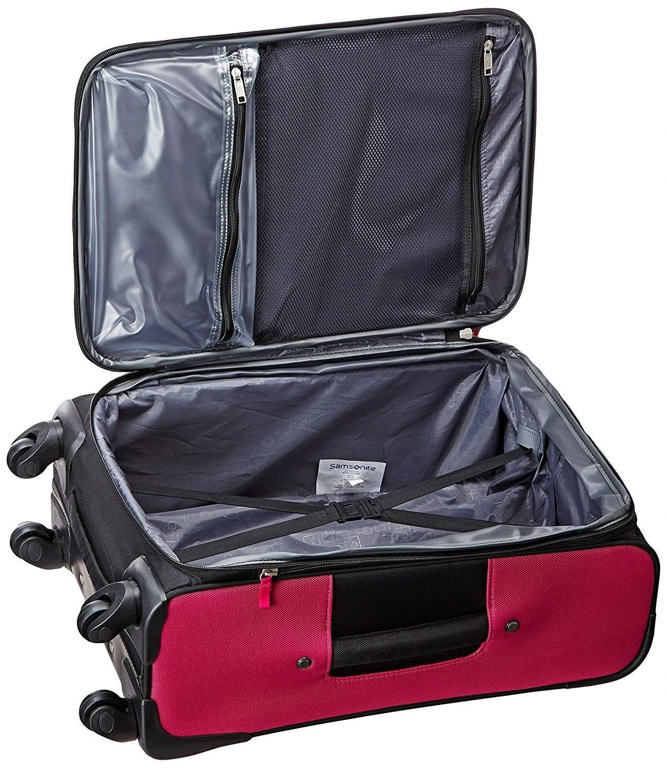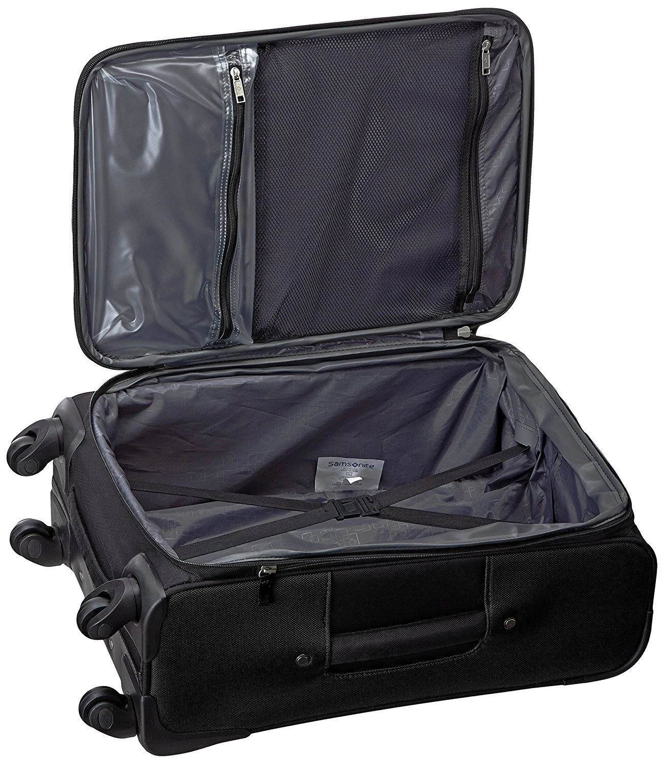 Pack and organize all of your travel essentials inside this rolling garment bag from Samsonite. The Samsonite Aspire GR8 Wheeled Garment Bag is made from durable polyester fabric and features a lightweight and sturdy design with a telescoping top handle and smooth rolling wheels that make it easy to maneuver. This garment bag includes a fully lined interior with a hanging section to hold garments, shoe pockets, corner pockets to hold belts, ties, or other accessories, and multiple zipper pockets to hold folded garments, undergarments, toiletries, and other must haves. Exterior zipper pockets offer added storage for last minute add ons or frequently used items.