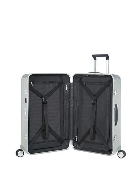 Lite-Box ALU will surpass your expectations in both style and performance. The robust, premium quality anodised aluminium shells and corner reinforcements protect your belongings. The workmanship and refined character are matched by superior features. The silent double wheels and long double tube pull handle ensure smooth manoeuvring and optimal comfort. SPECIFICATIONS Material:Aluminium Dimension:69 x 47 x 27 cm Weight:5.9 KG Volume:71 L Warranty:Limited 10 year global warranty MORE INFORMATION Ease of mind is ensured with our new locks with integrated TSA function. The personalisation tag enables you to quickly customhouse your case. The spacious interior of Lite-Box Aluminium is tailored to fit your needs and more. Both compartments feature packing straps and removable divider pads, enabling you to pack and compress your belongings carefully. To securely pack your remaining travel essentials, small and large pockets are foreseen, all made out of soft touch, high quality interior lining.